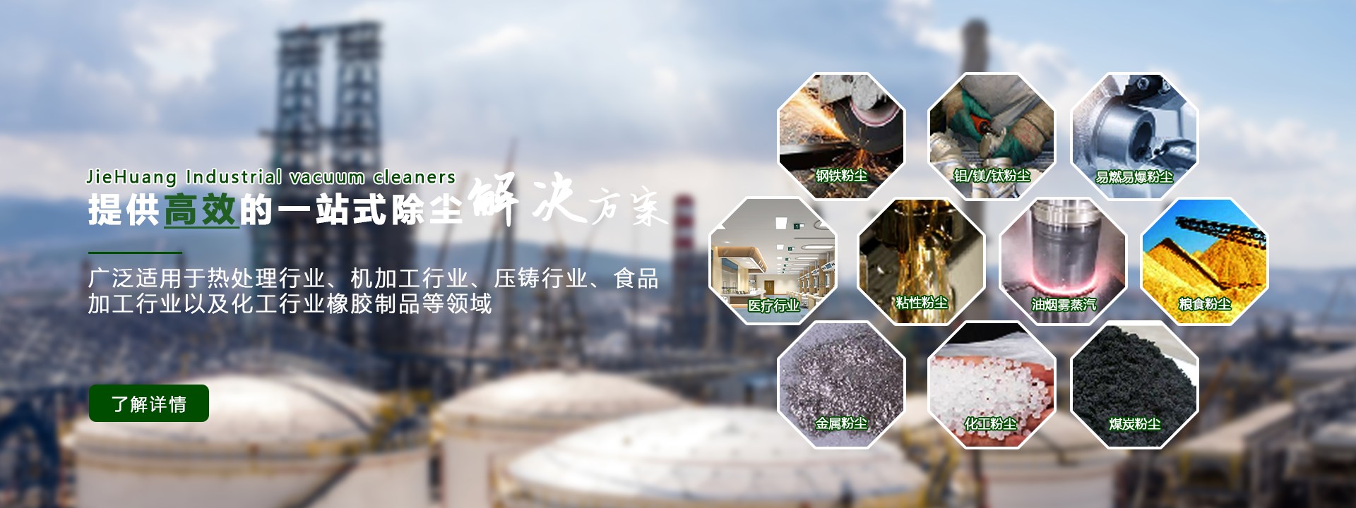 www.91色萝网站從創立之初一直專業致力於工業(yè)車間煙塵和粉塵治理,油霧異味淨化,針對熱處理(lǐ)行業(yè)、機加工行業、壓鑄行業、食品加工行業、化工醫藥行業,五金製造(zào)(拋光打(dǎ)磨),切磨銑削,焊接煙塵(chén),拋丸(wán)噴砂(shā),等離子切割及激光切割,鑽孔雕刻,紡織,汽車,高分子材料(liào),建材,電子製造,橡膠粉塵,塑料,冶金(jīn),材料攪拌等行業提供專業的解決方案。