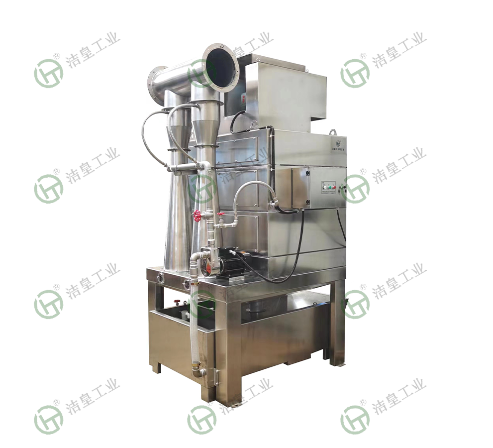 WQL型文(wén)丘裏濕式(shì)除塵器,該機利用文丘裏(lǐ)原理和氣相負(fù)壓使得(dé)噴淋(lín)液相形成,將吸入的煙霧,塵(chén)埃和廢氣被水霧、水漫捕捉吸附形成大液滴落入沉澱(diàn)池,部分細沫通過初過濾、高(gāo)效過(guò)濾除沫器浸潤吸附回落沉澱池。沉(chén)澱池沉澱水供給循環泵循環噴淋,周而複始,水位由液位(wèi)器控製,進水(shuǐ)管自動補給運作所蒸發的水汽損失(shī)。沉澱池底部的淤泥或碎屑可通過撈渣口人(rén)工清理(lǐ)或鬥式水箱底部球(qiú)閥排出。該機過濾單元無堵塞,高沉降分離效(xiào)率,排出空氣(qì)符合標(biāo)準。該機模塊化設計組裝,零件噴塑處理,工況需要亦可不鏽鋼製作。